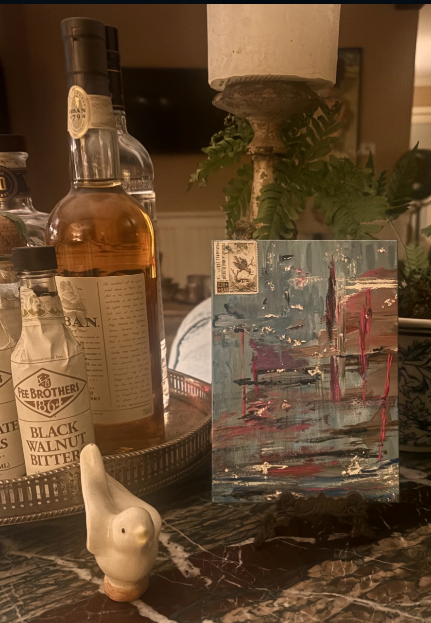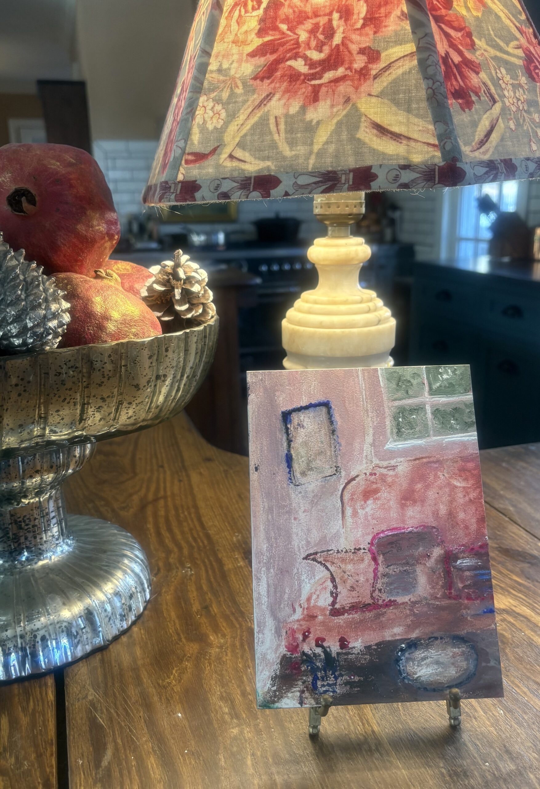 “Size sort of misses the bigger picture. Women have always known the secret of making home is creating the cozy. My small pictures aim to create an intimate and cozy relationship just like a good cocktail supper does. I love everything about making a happy juxtaposition of smells, tastes, and colors. Mixing up paint is just another way of cooking.”
